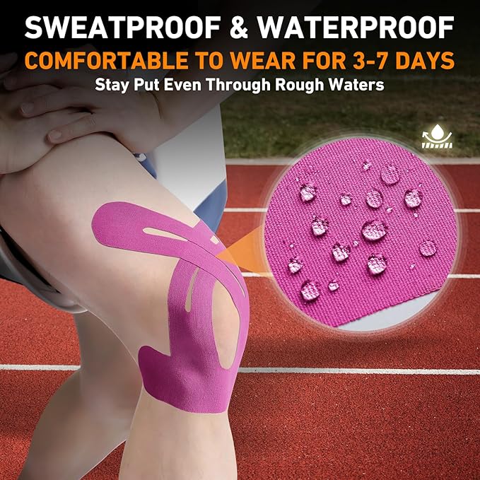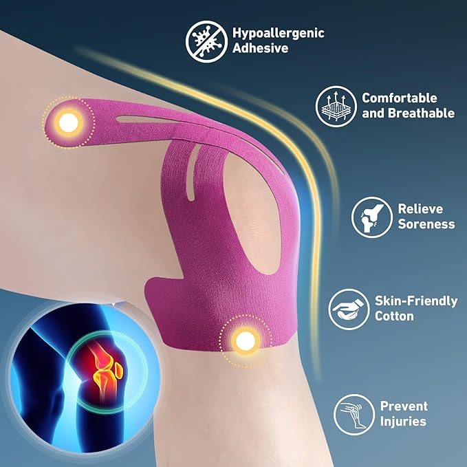 - BREATHABLE AND SKIN-FRIENDLY COMFORT - This k tape for knee features improved airflow and a hypoallergenic design to prevent irritation. The athletic tape is lightweight and flexible, ensuring all-day comfort.