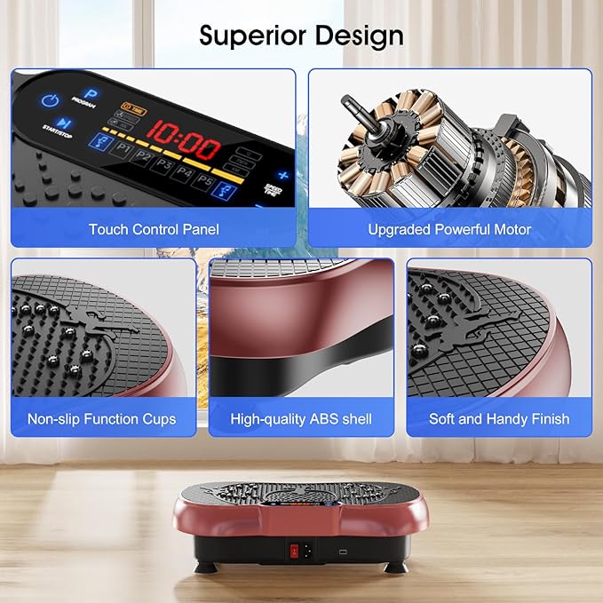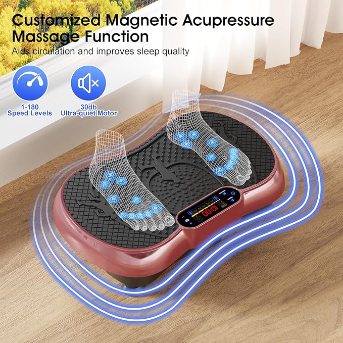 - ✅【Tailored features for different needs】: The vibration platform machine features 5 automatic modes, adjustable vibration speed (1 to 180), comes with 2 resistance training bands to work both the upper and lower body. You can combine these vibration routines with exercises such as squats, lunges, sit-ups, push-ups and yoga. 10-minute workout per day increases bone mineral density, allowing you to effortlessly achieve a perfect physique.