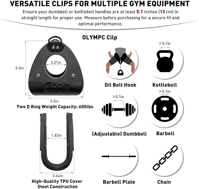 - Note: These clips are designed to fit dumbbell or kettlebell handles with a minimum length of 5 inches. Please measure the straight length of your dumbbell or kettlebell handles before purchasing.
