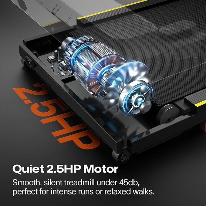 - 2.5HP Motor with Easy Mobility: Equipped with a portable treadmill motor, this walking pad delivers smooth and consistent performance for walking, jogging, or running. Its compact design fits seamlessly into any space, making it perfect for under desk walking pad use. Built-in transport wheels allow for effortless movement and storage, letting you easily slide it under a desk, bed, or into a corner when not in use.