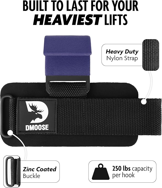- ππππππππππ πππ πππ ππππππππ πππ ππππ: Lift heavy with confidence using the DMoose Lifting Hooks for Weight Lifting and Power Lifting, each supporting up to 250 lbs. This high capacity provides the strength and stability you need to achieve your fitness goals. Whether you're performing deadlifts, pull-ups, or other heavy lifts, this lifting hook will help you maximize your strength and performance.