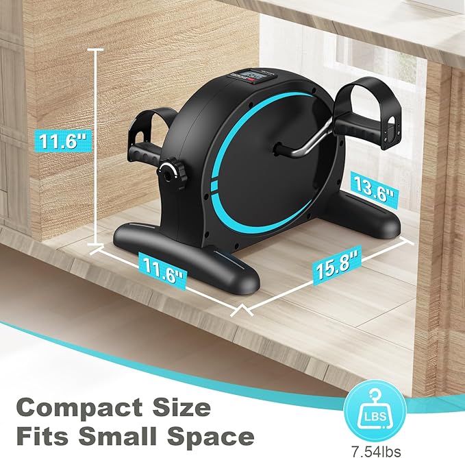 - 【PORTABLE AND EASY TO STORE】Lightweight design, portable and easy to assemble. The portable handle function makes the fitness exercise bike always ready. Product size: 15.8" x 13.6" x 11.6". You can put it under the desk, beside the sofa or in the locker. Small size and space saving - can be used at home or office.