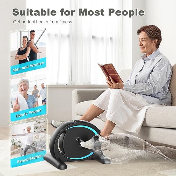 - 【ADJUSTABLE RESISTANCE】The adjustable resistance knob of the exercise mini bike can meet different physical conditions and bring a personalized experience. No noise is made during exercise, which is great for beginners with this low impact exercise, ideal for rehabilitation after surgery or injury. Specially designed for the elderly and rehabilitators.