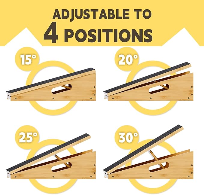 - Versatile Slant Board for Calf Stretching: This wooden slant board, measuring 15.8"L x 12.2"W x 5.3"H, is expertly crafted for optimal calf stretching and exercise. Ideal for athletes and physical therapy, it offers 4 adjustable angles to accommodate various stretching needs