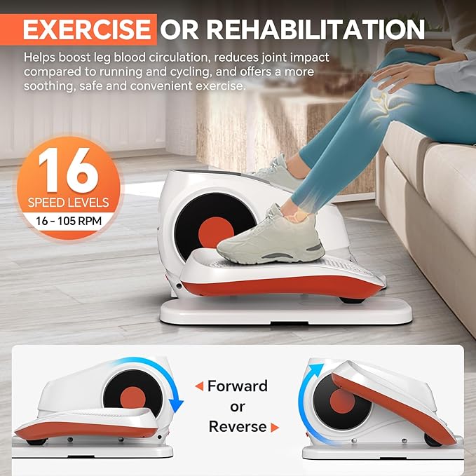 - ELLIPSE LEG EXERCISER FOR SENIORS, POST-SURGERY & SEDENTARY LIFESTYLES: Designed with 16 motion modes, this product is an excellent choice for knee/joint rehabilitation, offering far more comprehensive rehabilitation options. For non-rehab users: it provides a convenient way to burn calories while working, reading, or watching TV. The forward/reverse motion effectively targets the calf, thigh, and hip muscles without causing joint strain.