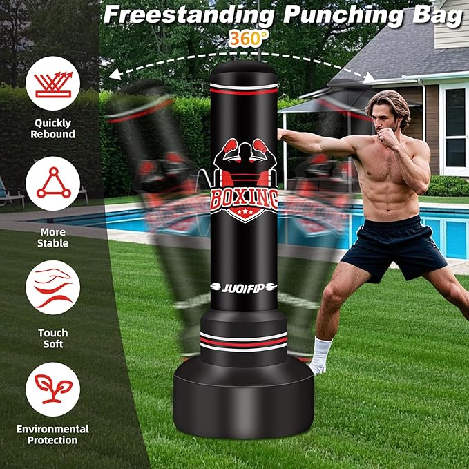 - Stand Up Punching Bag Adult: Made of thickened PVC material make the boxing heavy bag more durable. The punching bag with stand adult touch soft and elastic, which will quickly bounce back after being hitted or kicked, bring you excellent boxing experience. Start boxing with this heavy bag with stand