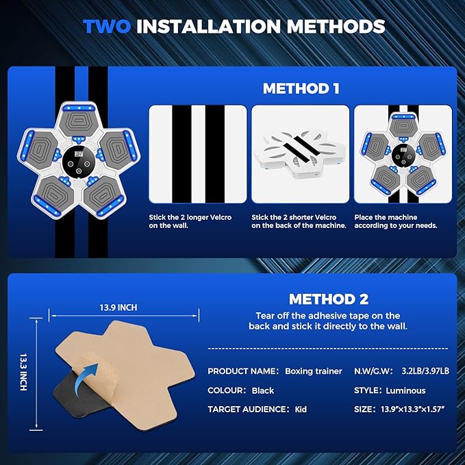 - Versatile Boxing Machine: Elevate your workout with multiple speed options and dynamic lighting effects. This music boxing machine offers an engaging fitness experience tailored to your needs.