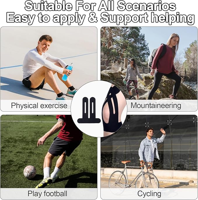 - Dynamic Support: Enhance your performance with our kinesiology tape precut, designed for a perfect fit on your knee. Whether you're sprinting, lifting, or jumping, this tape for knee reduces joint stress and lowers injury risks during high-intensity workouts