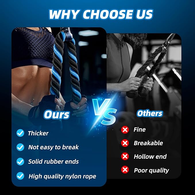 - Commercial Quality: The cable rope for tricep is 27-inch high quality nylon braided rope with durable rubber stoppers, strong and sturdy.