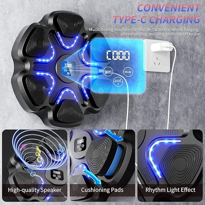 - πππππ πππππππ & πππ ππππππ - The LED display will show the number of puiching, recording your every progress and growth. This boxing machine has a variety of unigue lighting effect modes and speed adjustment functions tocreate a dynamic sports environment for you