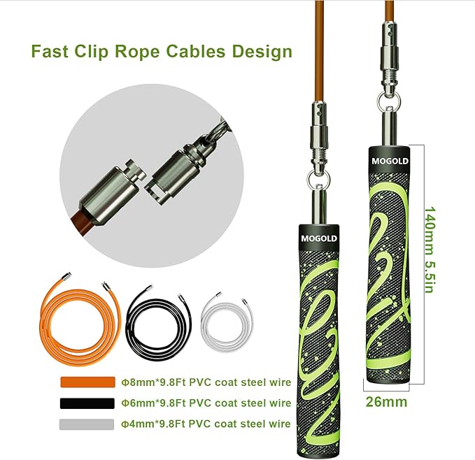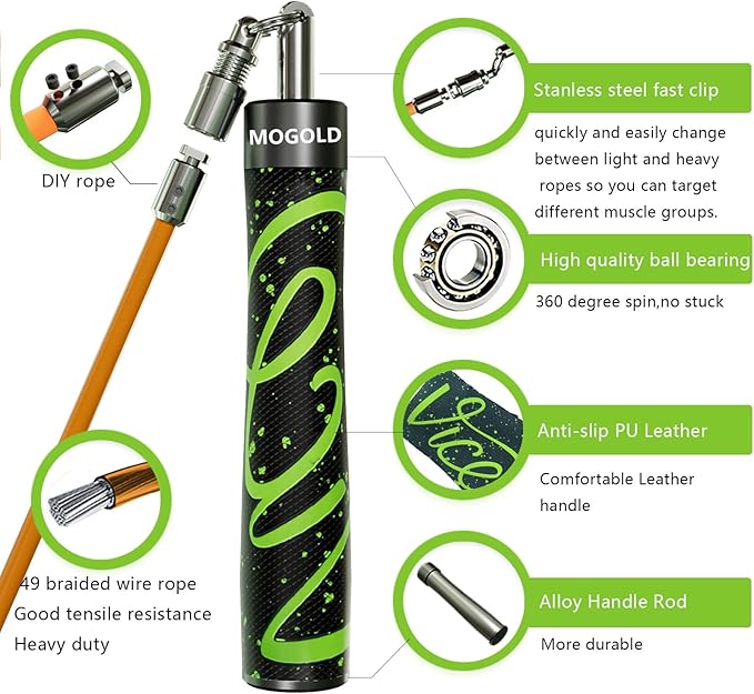 - 🛡️ Military-Grade Durability Combo Handles: PU leather with anti-slip coating (0.83 friction coefficient per ASTM D1894) Rope: Dual-layer PVC + 304 stainless steel spiral weave, enduring 100,000 bend tests (3x industry standard)