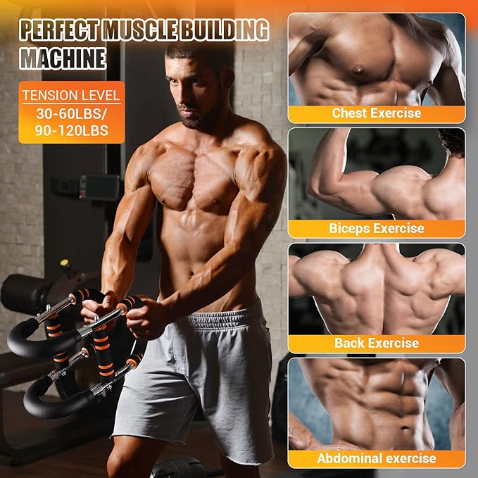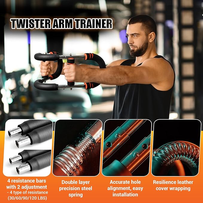 - [Professional-Grade Twister Arm Trainer] Engineered for serious strength building, our twister arm trainer offers adjustable 30-120lbs heavy-duty resistance - perfect for men aiming to sculpt chest muscles, enhance arm definition, and push through plateaus. Outperforms standard 60lbs trainers with real muscle growth results.
