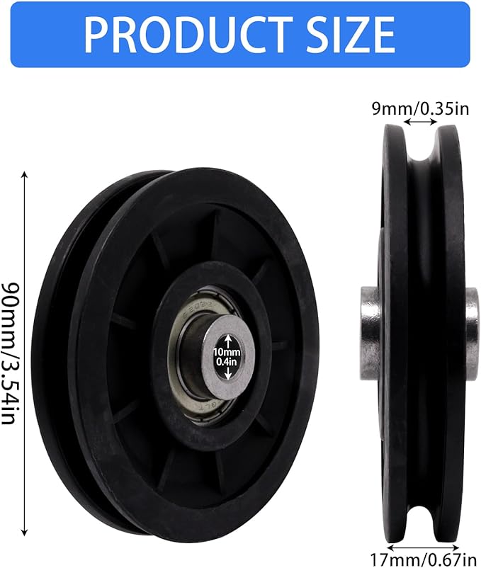 - Product Size: The universal cable pulley attachment external diameter is 90mm/3.54 inches, center hole diameter is 10mm/0.39 inches, groove width is 9mm/0.35 inches