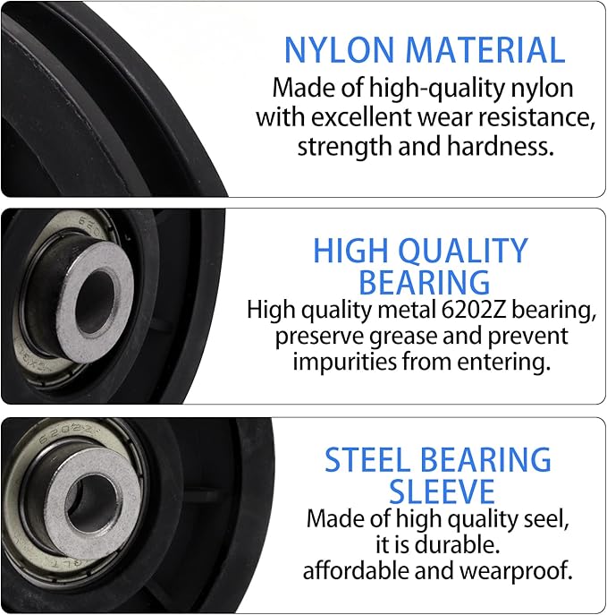 - Superior Material: The bearing pulley wheel is made of high-quality nylon material, strong and durable, super wear‑resistant and anti-rust, not easy to break, ensuring reliable quality and long service life
