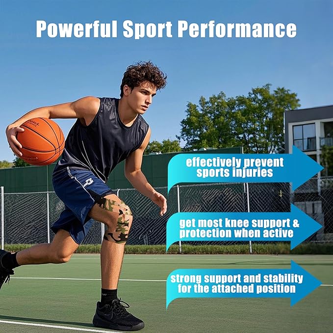 Precut Kinesiology Tape for Knees,12 Pcs – Elastic Knee Support & Stability, Pain Relief – Waterproof, Breathable, Hypoallergenic Athletic Tape (Camouflage)