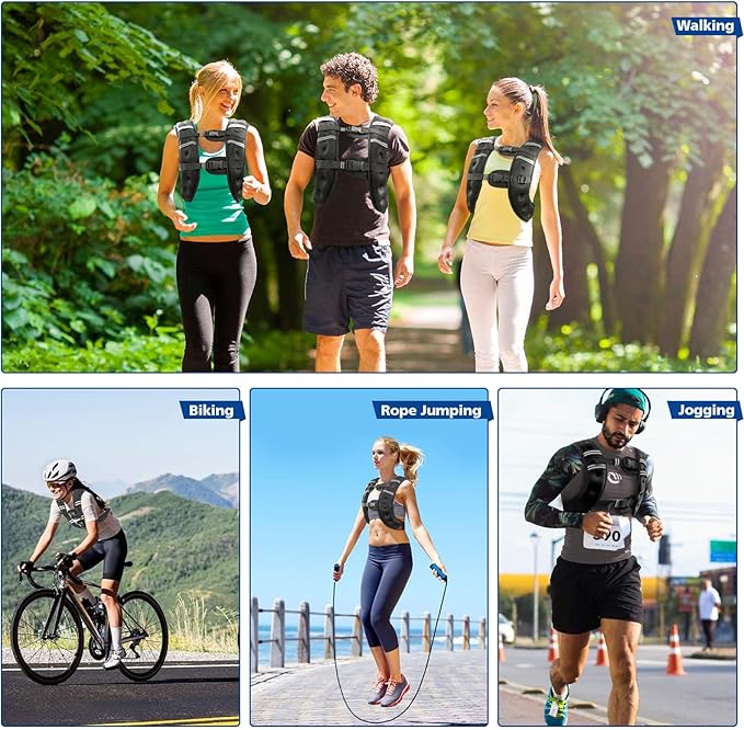 - 🏋️【Ergonomic Weight Distribution Weighted Vest】: Balanced weight distribution makes the upper body weight even,reduces shoulder fatigue,and improves exercise efficiency.Whether you're training for a specific sport or want to improve your overall fitness,our weighted vests for women and weighted vests for men are perfect for all types of strength training, muscle building, stair climbing, weight loss, weightlifting, walking, running and more, helping improve cardio conditioning and body strength, giving you more power, speed, and agility!