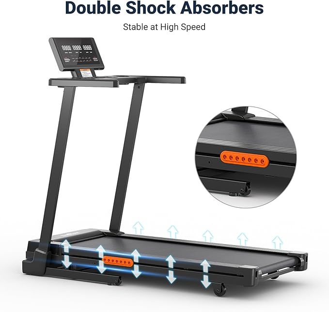 - [WIDENED RUNNING AREA]: Treadmills for home designed with 47 x 17 inch advanced silicone cushioning, suspended running deck, and TPR shock pads, reduces impact on your joints, making your workouts more comfortable and reducing the risk of injury