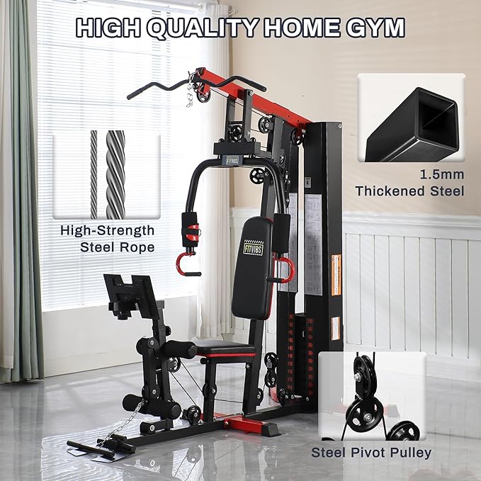 - 【Resistance】Home gym system has a 122.5 pound vinyl weight stack (including), with a resistance of up to 330 pounds. You can train and adjust to fit all fitness levels