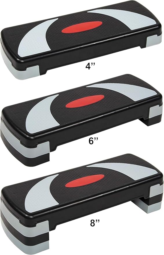 Step Aerobic Platform, Exercise Step with 5 levels Adjustable Height, 4 Stackable Risers, Fitness Training Workout Stepper for Home Gym, Cardio Strength, Multiple Options