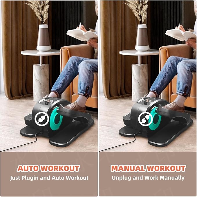 - Auto & Manual Exercise Modes - This Compact Desk Elliptical features 2 modes: auto (P1-P3) and manual (5 speeds, H1-H5,1.5-5.7KM/h) to personalize your workout for leg training or rehab. Includes unique remote control and forward/backward pedal movement. Note: Use Only When Sitting.