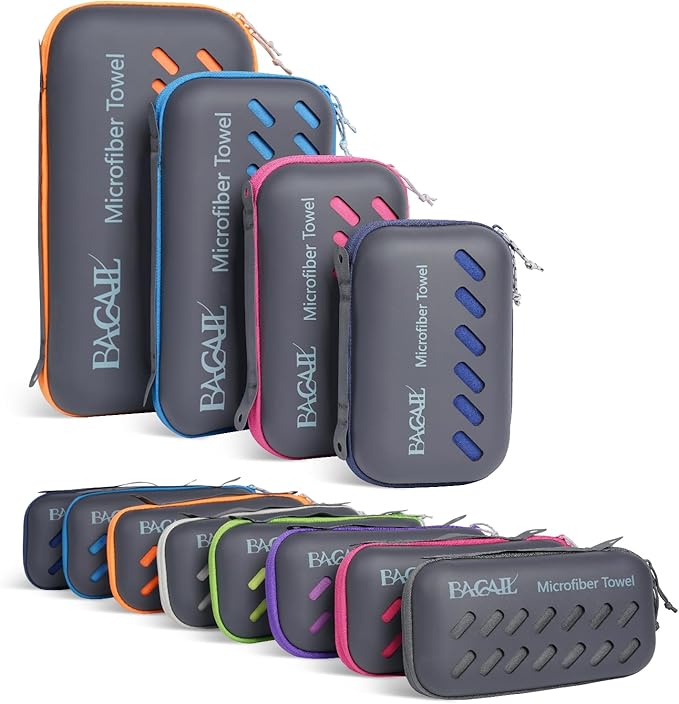 • Portable Travel Towel Case: BAGAIL microfiber towel comes with a soft, zippered EVA case that not only protects the towel, but also makes it easy to pack and carry with you on the go