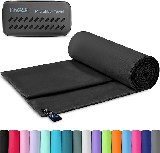 - Portable Travel Towel Case: BAGAIL microfiber towel comes with a soft, zippered EVA case that not only protects the towel, but also makes it easy to pack and carry with you on the go