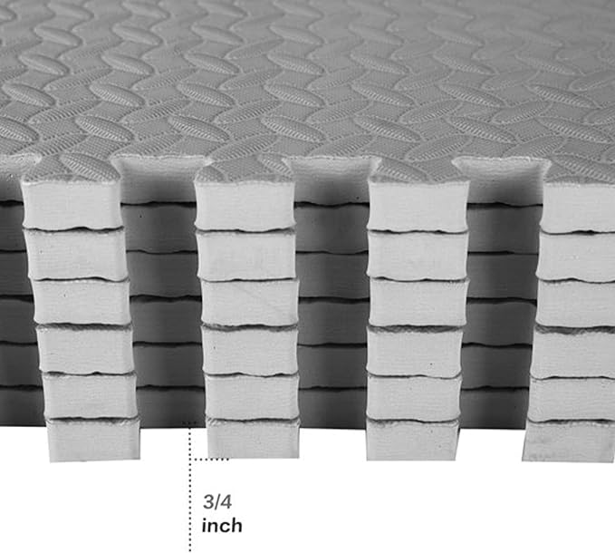 - Covers 96 square feet: Each tile measures 24” x 24” x 3/4”- thick from the highest point of the texture; Includes 24 tiles and 48 end borders for a polished look