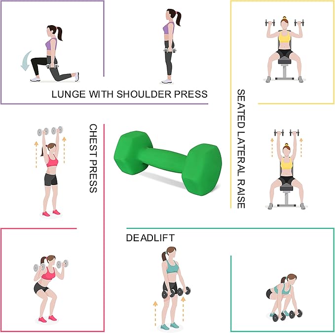 - NON-SLIP COMFORT GRIP: Featuring a soft neoprene coating, these dumbbells offer a comfortable and ergonomic grip that absorbs moisture, making them ideal for a wide range of indoor and outdoor exercises.