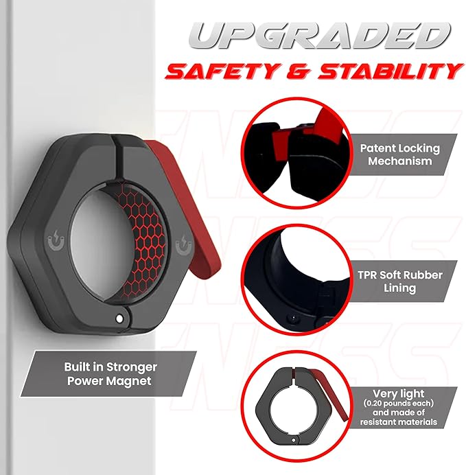 - Safety & Stability: Experience unparalleled safety with our magnetic adsorption and anti-rebound mechanism, ensuring your weights stay firmly in place during intense training sessions. These innovative clamps utilize magnets to securely hold your weights in place, ensuring maximum safety during your workouts. No more worries about weights slipping or shifting unexpectedly.