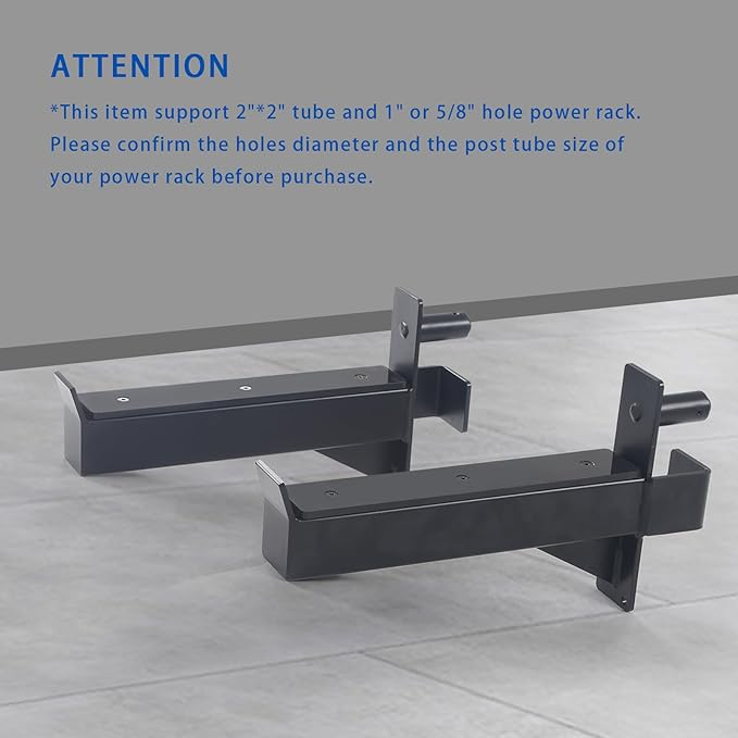 - Sold as pair -- Zukam safety catcher can be used for any 2” x 2” tube power racks, Dimensions for each spotter arm are 14.5” L x 2” W x 8” H. This safety catcher is designed to fit most squat rack or power cage, please confirm the holes diameter and the post tube size of your power rack.