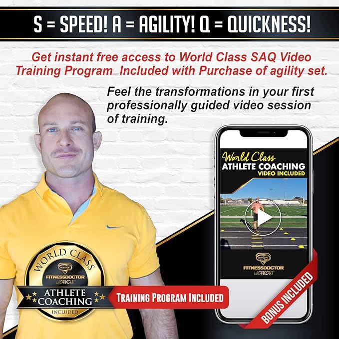 - BONUS INCLUDED: Not only are you getting the best ladder, speed, and agility training equipment combination when you purchase this set you're also getting a 14 part video series by the Fitness Doctor that will teach you beginner - advanced workout methods of ladder and speed cone equipment set up, how to specifically perform the footwork drills for your chosen sport (football, soccer, basketball, hockey, lacrosse, tennis, boxing and more) for getting the most performance out of your body.