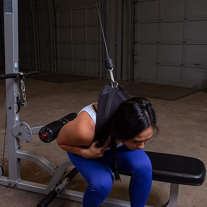 - FEATURES: Extra-wide padded harness protects the neck, shoulders, back and chest while you concentrate on your abs and obliques. Comfortable foam grips offer quick and easy hand positioning. Heavy-duty solid steel D ring for strength and durability.