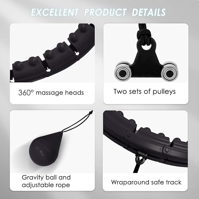 - 【360-degree Massage Ring】Exercise comfortably and alleviate lower back pain with our shock-absorbing massage ring. This exercise equipment can burn fat 2-3 times faster than a normal hoop. We suggest a 30-minute workout 5 days a week to burn up to 800 calories per session.