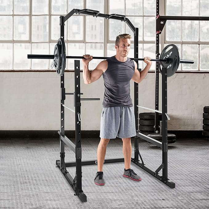 - Construction – The 12- and 14-gauge steel tubing allows this rack to withstand grueling workouts. Maximum weight capacity of user is 500 lbs. and maximum training load is 500 lbs.