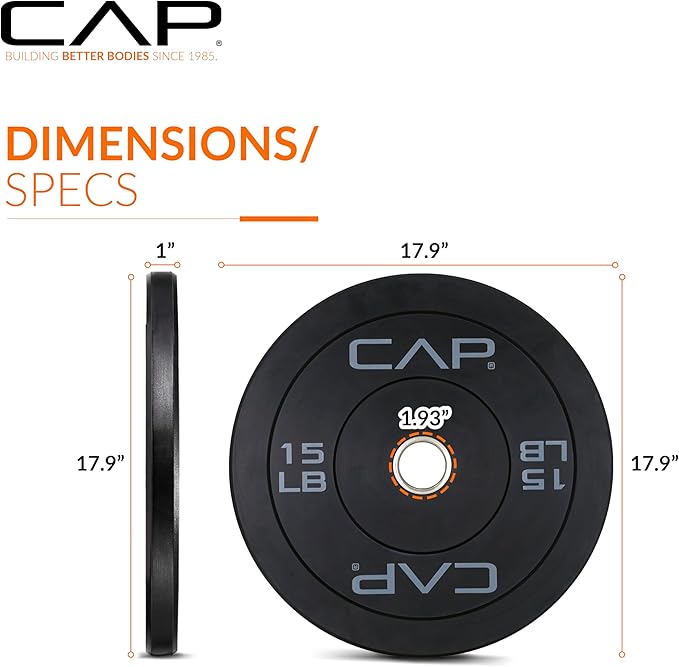 - WHAT’S INCLUDED – TWO 15-pound Budget bumper weight plates in black; Designed to accommodate Olympic barbells (with 2-inch center hole)