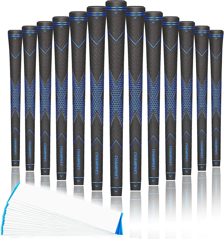 CHAMPKEY Premium Rubber Golf Grips 13 Pack | High Traction and Feedback Rubber Golf Club Grips | Choose Between 13 Grips with 15 Tapse and 13 Grips with All Kits, Midsize