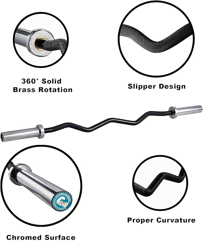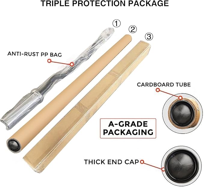 - 【KNURLED HANDLES】This Olympic barbell adopts diamond knurl for improving grip. These knurls increase friction, And it can increase the safety and ensure comfort when you exercises.