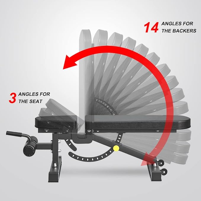 - ADJUSTABLE BENCH: 14 different backrest adjustments from decline 17 degrees to Incline 90 degrees, 3 different seat adjustments from 0 degrees to 20 degrees.