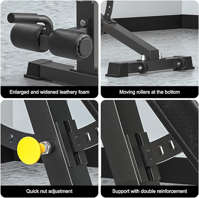 • COMFORT OF SUPERIOR LEATHER: The bench has 2.4-inch thick backrest cover with soft high grade PU leather to support your head and neck that will bring you a comfortable atmosphere to enjoy your training, the sweat-proof covered keeps you away from the smell.
