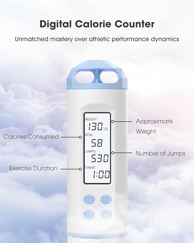 - 【Revolutionize Your Workouts with Our Smart Digital Jump Rope】Tired of losing count during your jump rope sessions? Say goodbye to that frustration with our innovative digital jumping rope featuring a built-in counter. Simply set your weight, and let it automatically track your jumps, time, and calories burned, making your workouts more efficient and enjoyable.