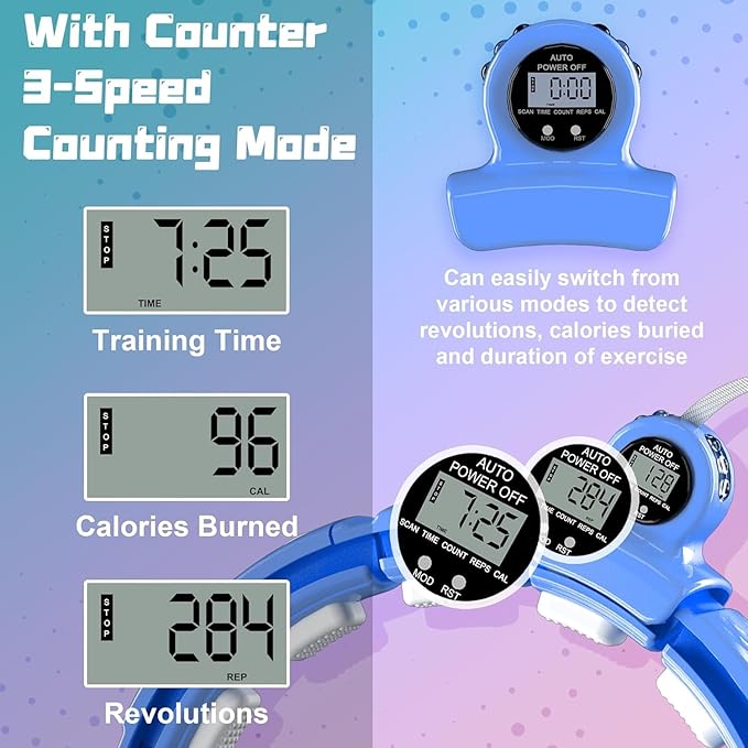 - 【PLEASE NOTE】: This is 20 knots infinite hoop with counter, the counter can not be charged, it is not include charging cable, powered by button battery, no led light. The battery is replaceable. Please ignore the hole on the back of the counter and the led light bead!!! Please make sure that the gray button section (the sensor section) is connected to the main structure of the workout hoop, otherwise, the counter will not work properly!!!