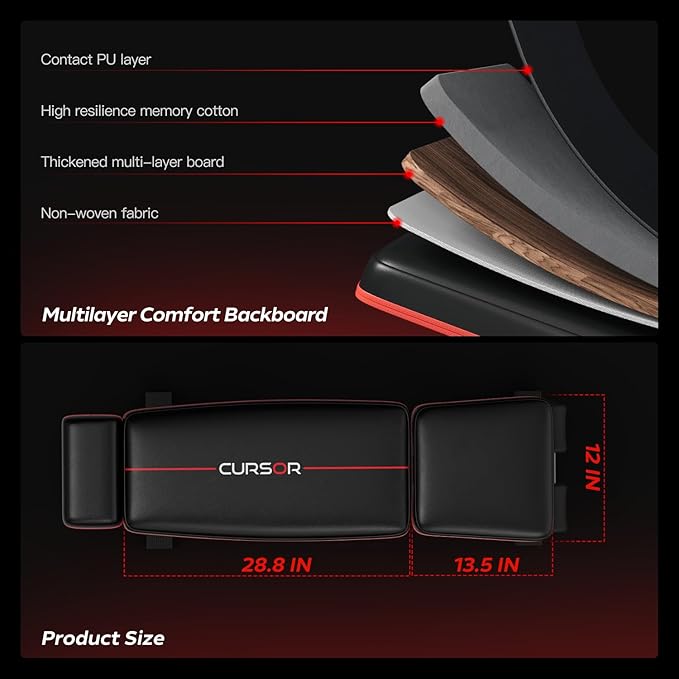 - MULTI-ADJUSTMENT - CURSOR FITNESS Specifically designed with a headrest to provide better head support and comfort, it also features a 3-inch, 3-level adjustable height for more options. The backrest supports 8 levels of adjustment, from incline to decline. The seat cushion supports 4 levels of adjustment, and the footrest supports 3 levels of adjustment.
