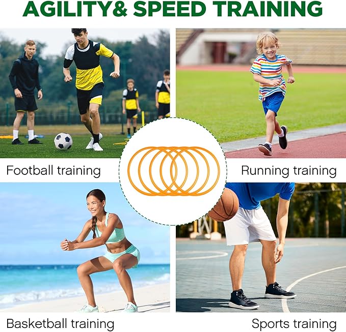 - Proper Size for Kids and Adults: the agility rings are about 15 inches/ 38 cm, large and lightweight, different placement methods can achieve different training purposes, ideal for most boys, girls, men, women and athletes