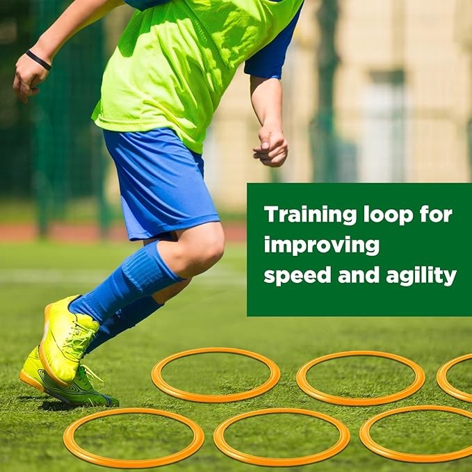 - Proper Size for Kids and Adults: the agility rings are about 15 inches/ 38 cm, large and lightweight, different placement methods can achieve different training purposes, ideal for most boys, girls, men, women and athletes