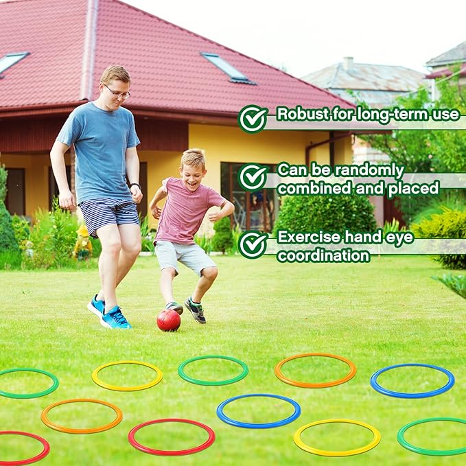 - Proper Size for Kids and Adults: the agility rings are about 15 inches/ 38 cm, large and lightweight, different placement methods can achieve different training purposes, ideal for most boys, girls, men, women and athletes