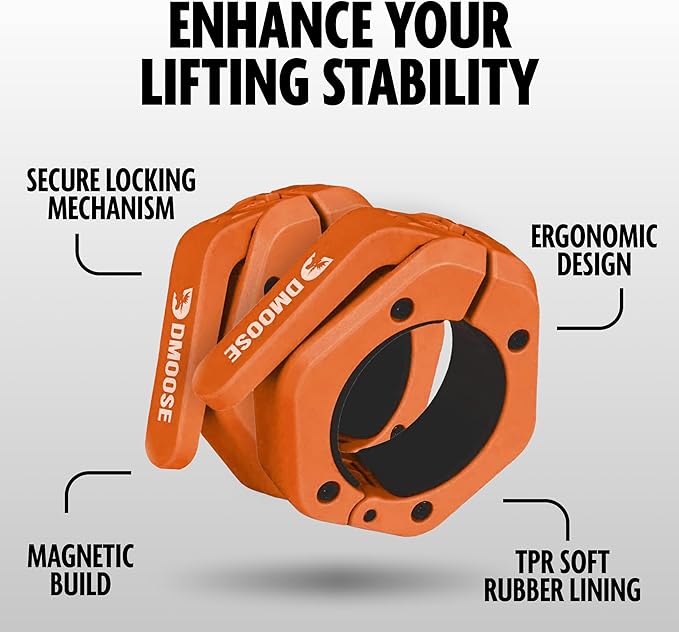 - 𝐏𝐑𝐄𝐕𝐄𝐍𝐓 𝐏𝐋𝐀𝐓𝐄 𝐒𝐋𝐈𝐏𝐏𝐀𝐆𝐄 𝐅𝐎𝐑 𝐒𝐓𝐀𝐁𝐋𝐄 𝐖𝐎𝐑𝐊𝐎𝐔𝐓𝐒: Ensure your plates stay securely in place during every lift with DMoose Weight Bar Clamps. Designed for serious weightlifters, these magnetic bar clips provide unmatched stability, allowing you to focus on perfecting your form and maximizing your performance. No more worrying about shifting weights; lift with confidence and achieve your fitness goals with unparalleled stability and support.