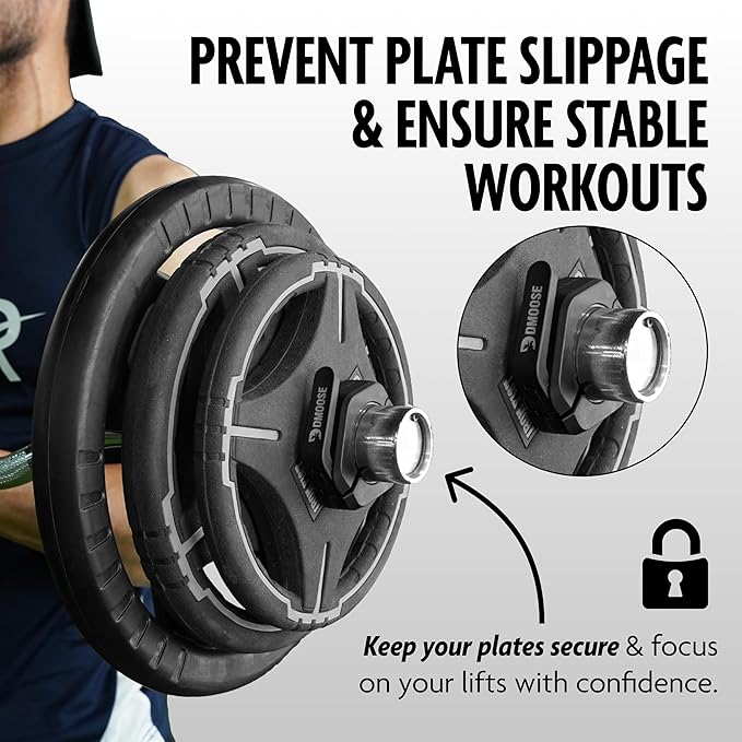 - 𝐏𝐑𝐄𝐕𝐄𝐍𝐓 𝐏𝐋𝐀𝐓𝐄 𝐒𝐋𝐈𝐏𝐏𝐀𝐆𝐄 𝐅𝐎𝐑 𝐒𝐓𝐀𝐁𝐋𝐄 𝐖𝐎𝐑𝐊𝐎𝐔𝐓𝐒: Ensure your plates stay securely in place during every lift with DMoose Weight Bar Clamps. Designed for serious weightlifters, these magnetic bar clips provide unmatched stability, allowing you to focus on perfecting your form and maximizing your performance. No more worrying about shifting weights; lift with confidence and achieve your fitness goals with unparalleled stability and support.