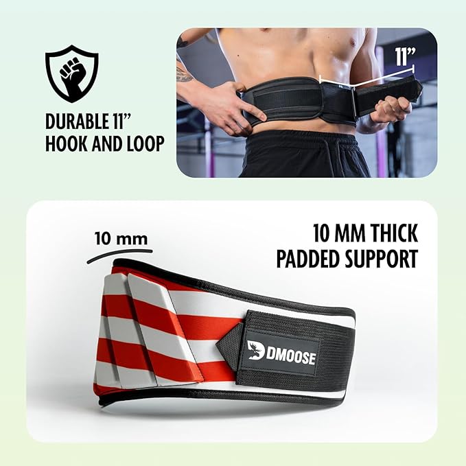 - 𝗠𝗔𝗜𝗡𝗧𝗔𝗜𝗡 𝗜𝗗𝗘𝗔𝗟 𝗕𝗢𝗗𝗬 𝗣𝗢𝗦𝗧𝗨𝗥𝗘: The DMoose Weight belt helps you stay in the perfect form for intense workouts. Whether you are a beginner or an advanced lifter, these Weight lifting belts will help you lift more comfortably and reduce risk of injury to your lower back while working out. Built to last so you can keep lifting even longer. Add this to your workout gear so you're ready to lift harder than ever!