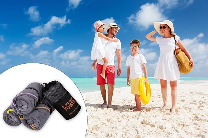 - Family Set Design: The towel set includes 4 pack microfiber towels and a breathable mesh bag, each towel size: 24 "x 48". To facilitate family members distinguish their own towels, each towel edge seams in different colors. This microfiber towel is a great choice for your family.