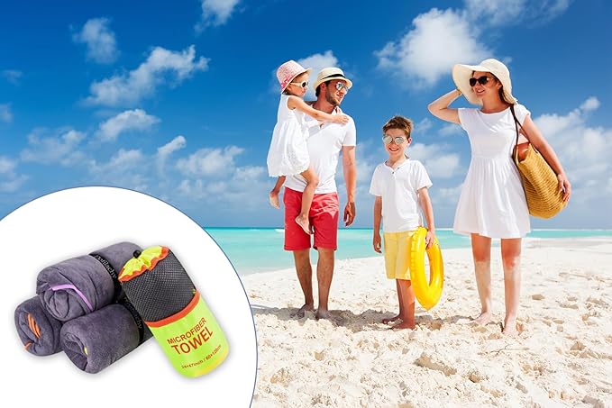 - Family Set Design: The towel set includes 4 pack microfiber towels and a breathable mesh bag, each towel size: 24 "x 48". To facilitate family members distinguish their own towels, each towel edge seams in different colors. This microfiber towel is a great choice for your family.